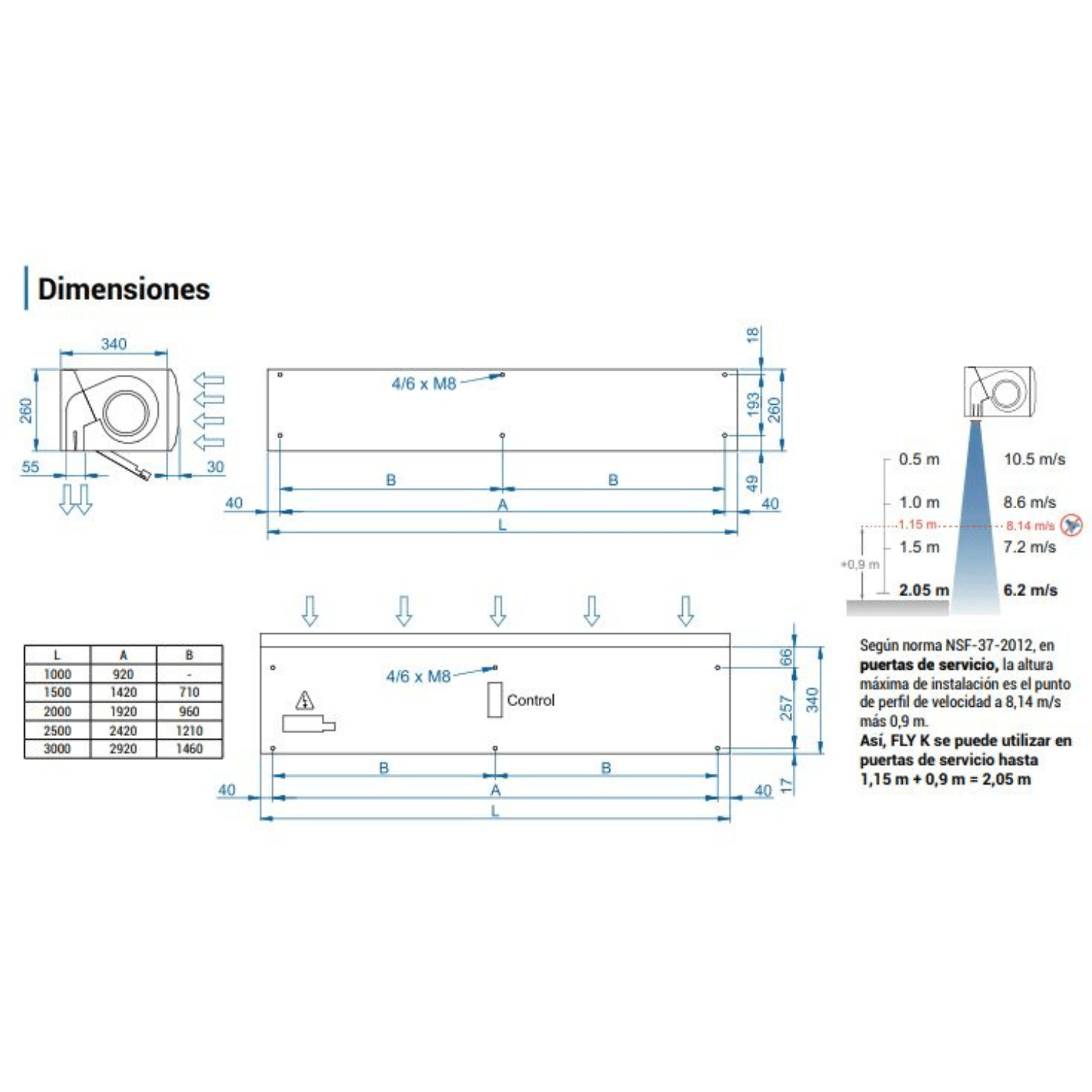 Cortinas de aire antinsectos modelo Fly K 1000 A sin calefacción