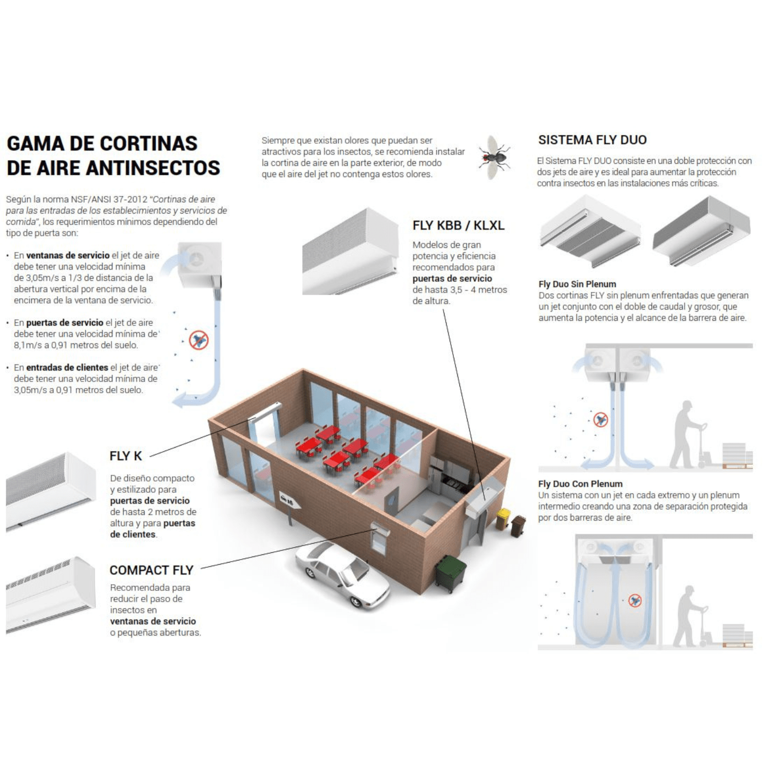 Las cortinas de aire antinsectos son la solución más eficaz para evitar la entrada de moscas y otros insectos voladores en espacios donde la higiene y la seguridad alimentaria son fundamentales. Mediante un potente chorro de aire de alta velocidad, crean una barrera invisible que bloquea el paso de insectos sin necesidad de puertas físicas ni sistemas químicos.