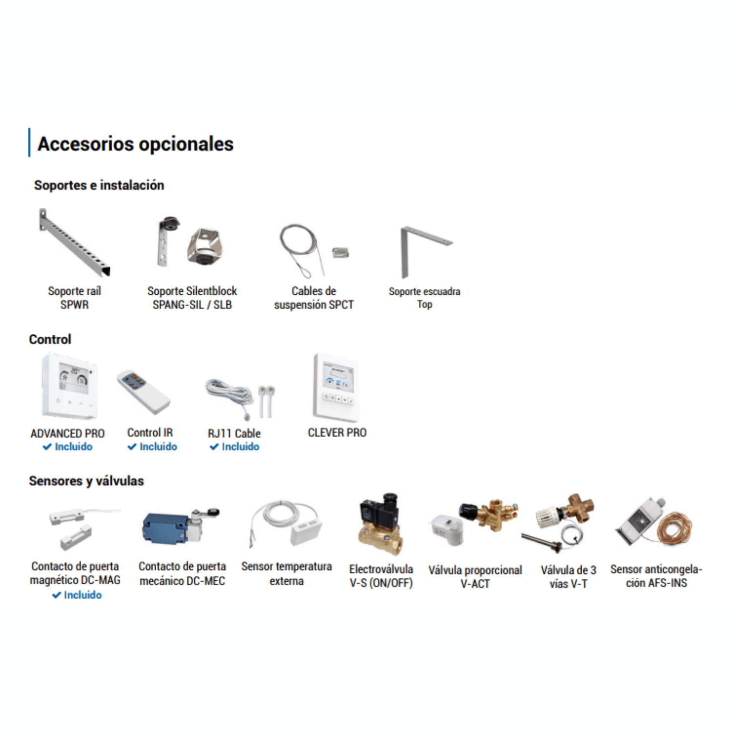 • Control opcional: Avanzado Clever (programable, automático, Modbus RTU, ahorro energético)