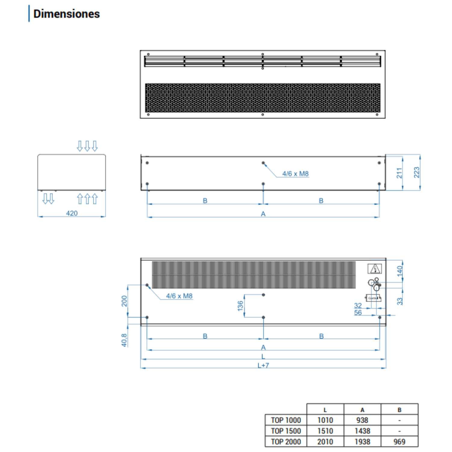 • Tipo: Cortina de aire decorativa empotrable, diseñada para instalación completamente vista