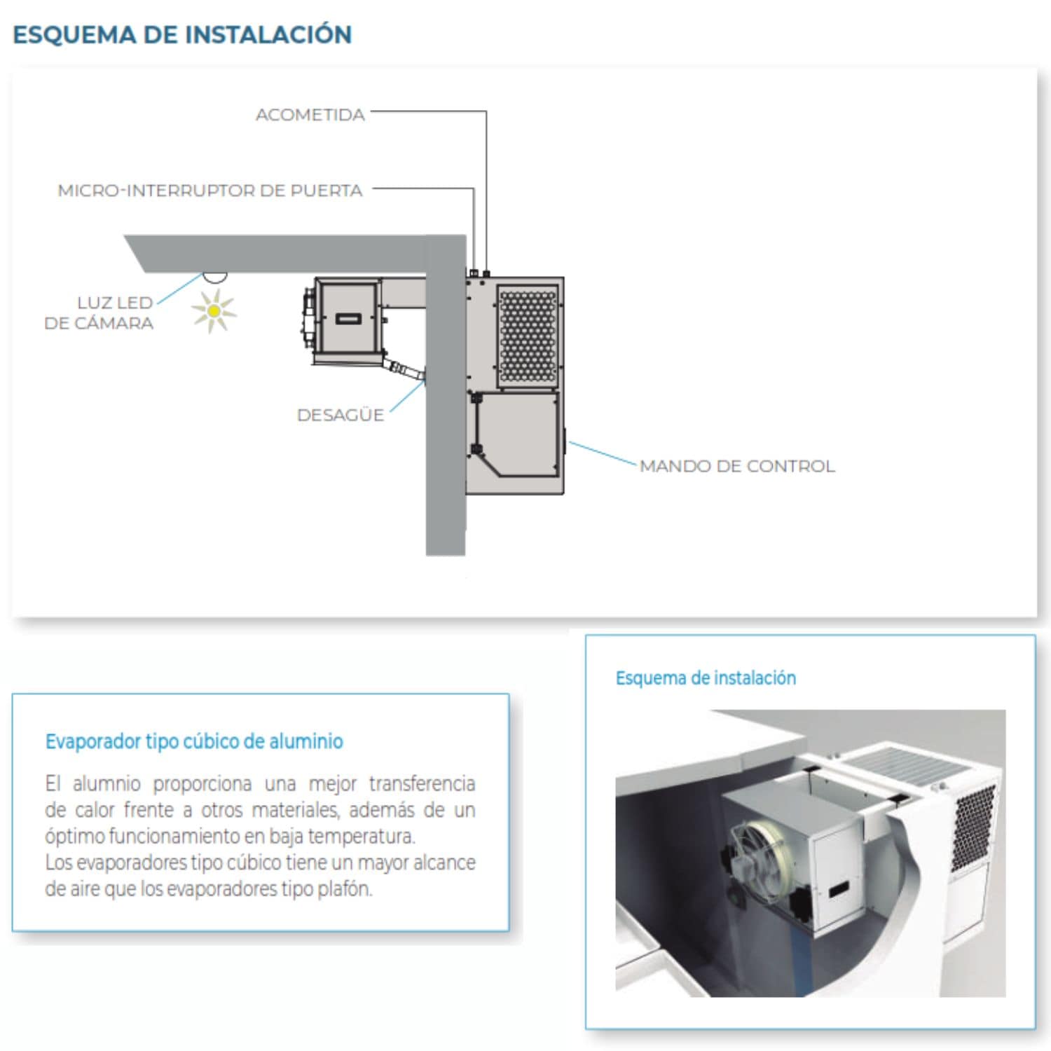 • Evaporador cúbico de aluminio → mayor alcance del aire y mejor transferencia térmica.