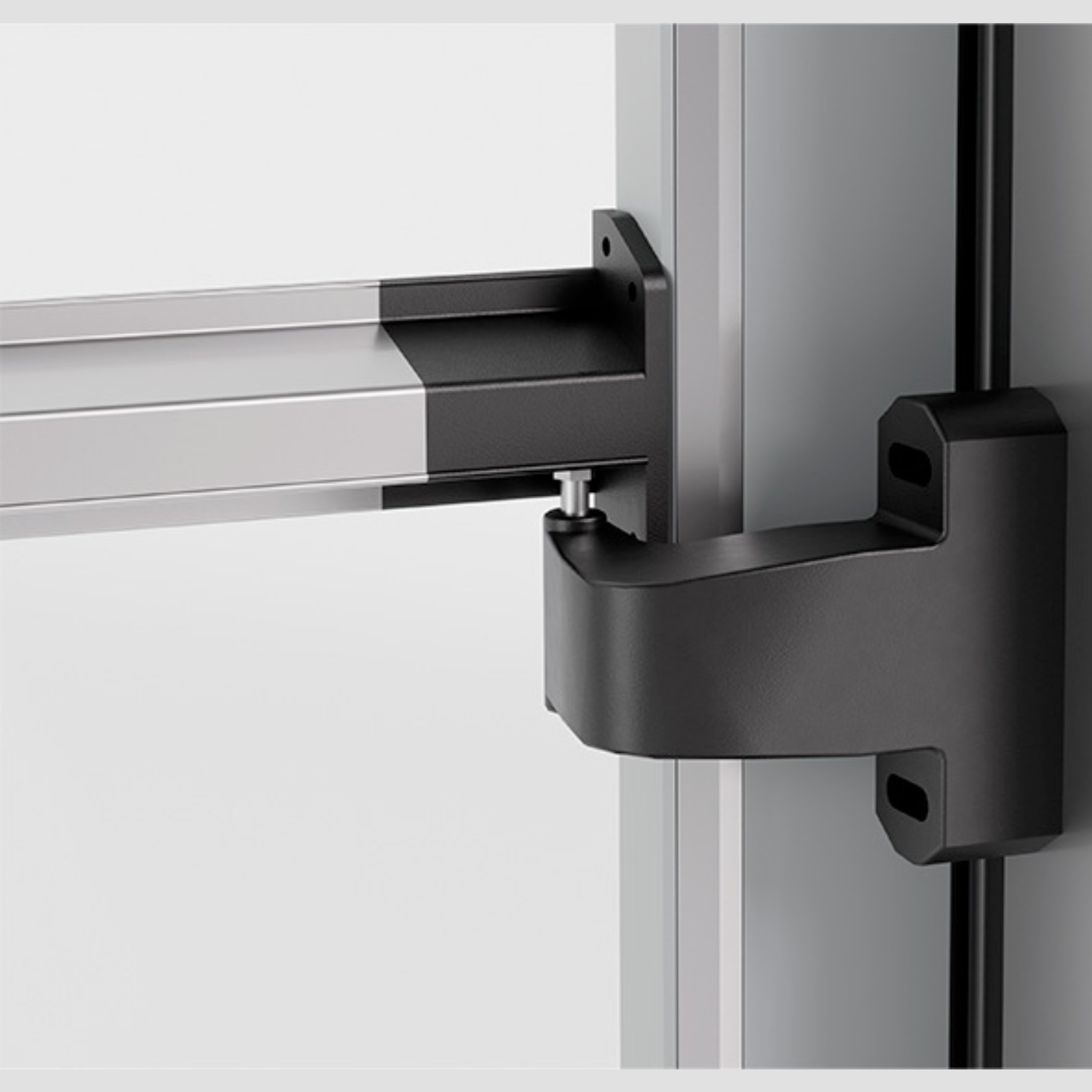 • Raíl superior de aluminio anodizado, elevado y protegido
