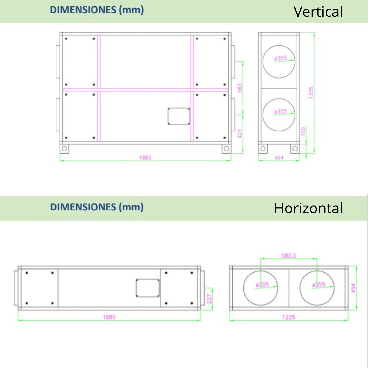 🔧 Características técnicas –  Recuperador de calor ARR CC 20 (H / V)