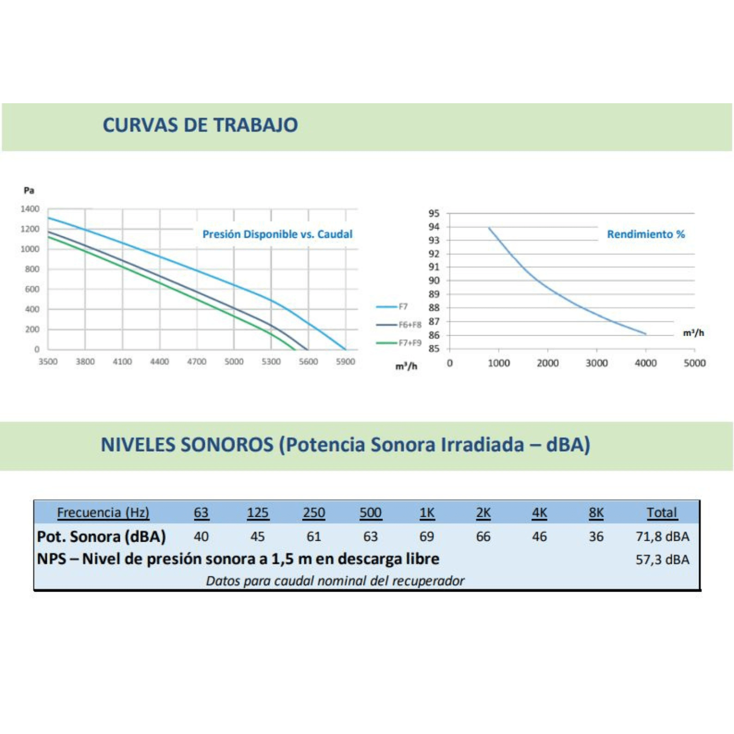A pesar de su potencia, el equipo mantiene un nivel de presión sonora controlado, con aproximadamente 57,3 dBA a 1,5 m en descarga libre, adecuado para salas técnicas e instalaciones industriales.