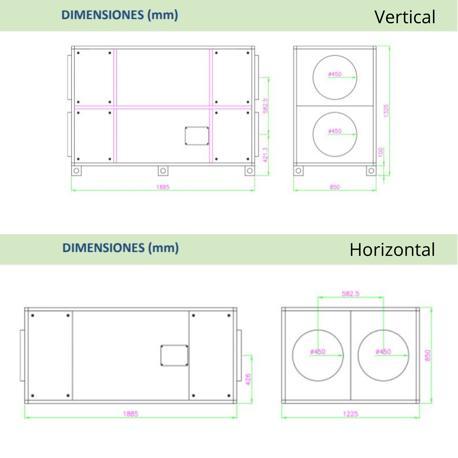 Disponible en montaje horizontal (H) o vertical (V), el ARR CC 40 ofrece una gran flexibilidad de instalación, adaptándose a diferentes espacios técnicos y configuraciones de obra nueva o rehabilitación energética.