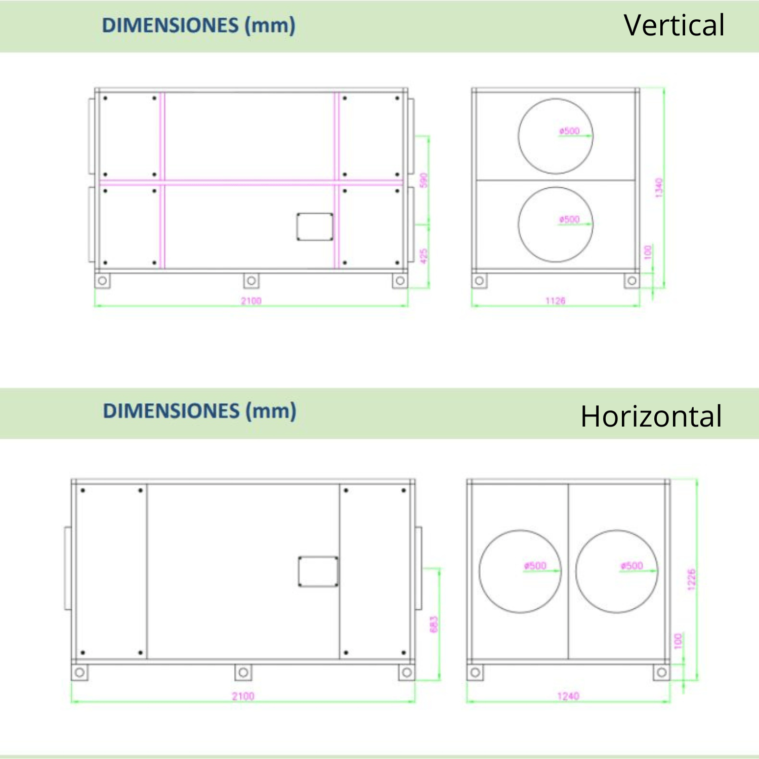 Disponible en configuración horizontal (H) o vertical (V), el ARR CC 60 se adapta fácilmente a diferentes espacios técnicos, facilitando su integración tanto en obra nueva como en rehabilitaciones energéticas.