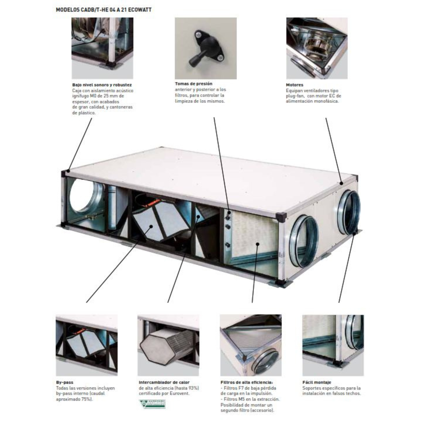 🔧 Características técnicas – ♻️ Recuperadores de calor CADB/T-HE 04 a 21 ECOWATT